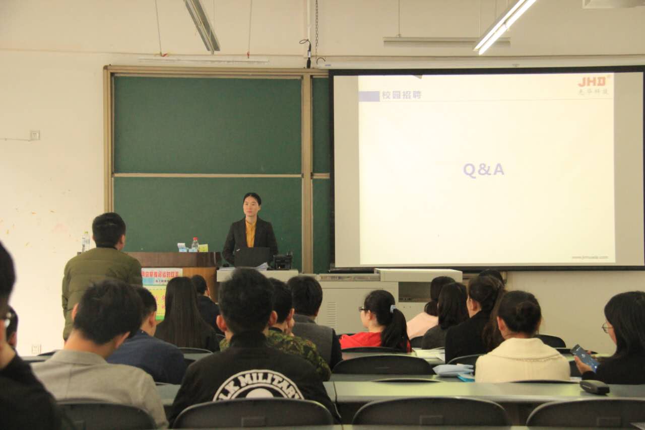 在熱烈的交流氣氛中,光華科技人力資源同事向同學(xué)們介紹了公司在研發(fā)、技術(shù)、生產(chǎn)各方面的實力,以及公司歷經(jīng)30多年發(fā)展形成的企業(yè)文化及“誠信、關(guān)懷、勤奮、上進、學(xué)習(xí)”的用人理念,并一一回答了同學(xué)們熱心的提問。