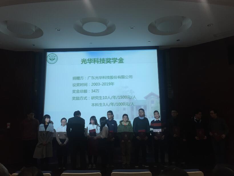 近日,一年一度的中山大學(xué)化學(xué)學(xué)院捐贈(zèng)獎(jiǎng)學(xué)金頒獎(jiǎng)典禮如約舉行。光華科技現(xiàn)場(chǎng)見證了莘莘學(xué)子們的優(yōu)異表現(xiàn),并為獲得光華科技獎(jiǎng)學(xué)金的學(xué)子們頒發(fā)獎(jiǎng)勵(lì),勉勵(lì)大家再接再厲,爭(zhēng)取獲得更大的進(jìn)步,成為化工行業(yè)的棟梁之才。