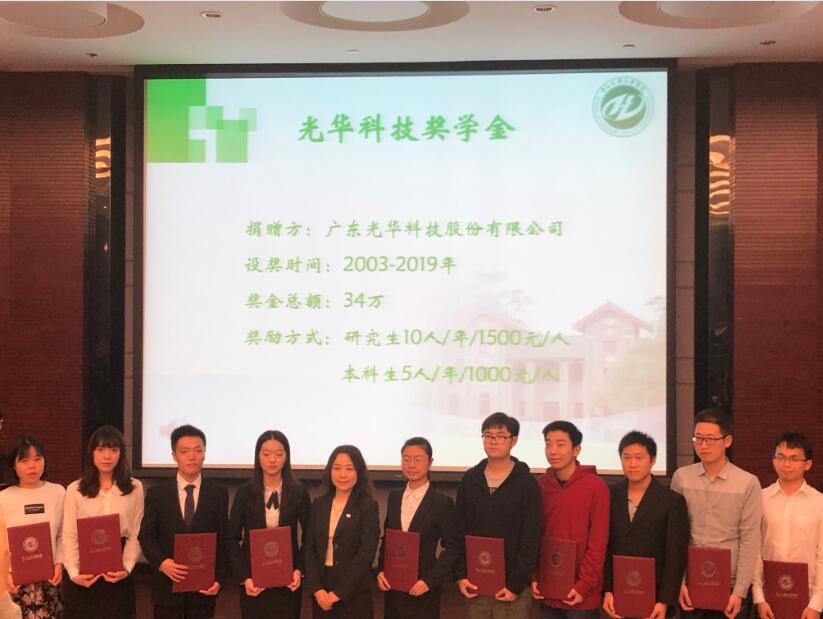 有賴于社會各界的鼎力支持,光華科技穩(wěn)步前行。在企業(yè)發(fā)展過程中,我們始終不忘回饋社會,推動(dòng)行業(yè)發(fā)展。光華科技目前與各地高校開展了多種形式的合作,包括設(shè)立光華科技獎(jiǎng)學(xué)金、產(chǎn)學(xué)研合作、研究生校外培養(yǎng)基地等,整合企業(yè)資源,攜手培養(yǎng)更多優(yōu)秀人才。