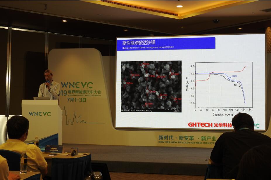 在今天下午舉行的2019世界新能源汽車大會(huì)“動(dòng)力電池技術(shù)創(chuàng)新與安全”主題峰會(huì)上,光華科技向與會(huì)各方進(jìn)行了“以創(chuàng)新思維重塑動(dòng)力電池價(jià)值鏈”的主題報(bào)告,首次對(duì)外發(fā)布即將上市的新產(chǎn)品——磷酸錳鐵鋰!