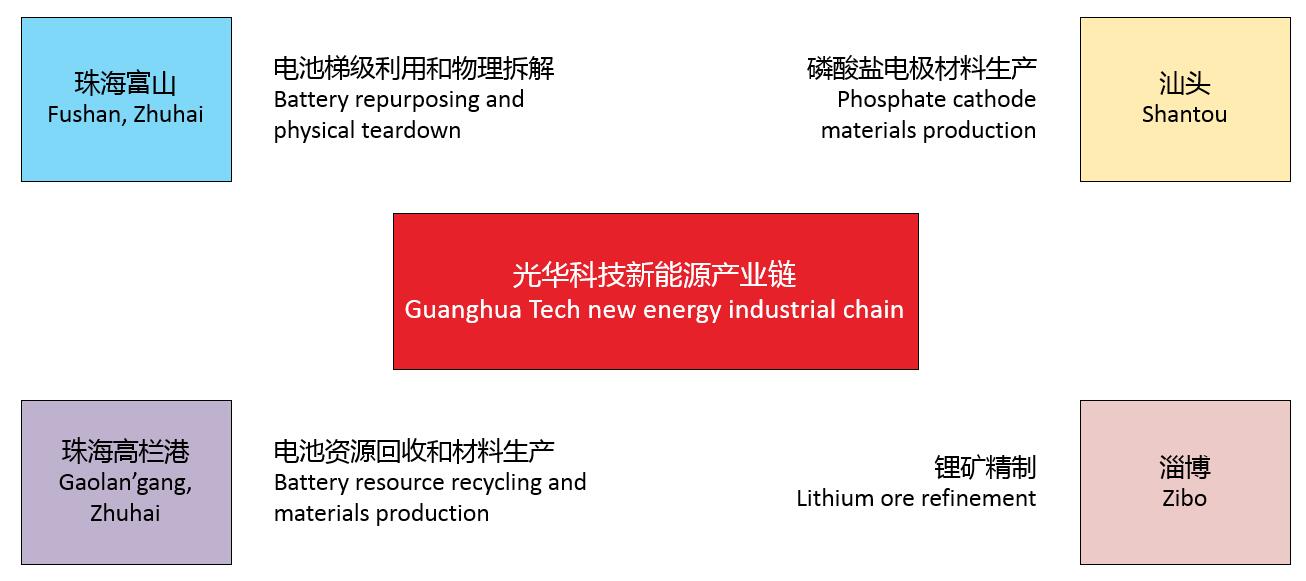 目前,公司積極推進(jìn)自有技術(shù)的產(chǎn)業(yè)化,分別通過汕頭(磷酸鐵鋰、磷酸錳鐵鋰等磷酸鹽)、珠海富山(梯級(jí)利用)、珠海高欄港(過渡金屬化合物、氧化物電極材料及其前驅(qū)體)、淄博(鋰精礦)等區(qū)域布局,形成了系統(tǒng)的動(dòng)力電池全生命周期產(chǎn)業(yè)鏈。