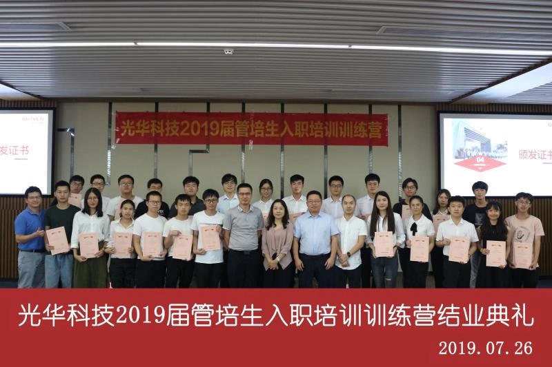 7月初,光華科技迎來了一批新生力量——2019屆管培生,為了幫助大家完成從在校生到職場人的華麗轉(zhuǎn)身,公司精心打造了管培生入職培訓(xùn)訓(xùn)練營,隨著軍訓(xùn)鍛煉、文化融入、理論授課和上崗實(shí)操等一系列干貨滿滿的培訓(xùn)安排后,光華科技2019屆管培生入職培訓(xùn)訓(xùn)練營慢慢落下帷幕。7月末,在公司領(lǐng)導(dǎo)的指導(dǎo)下,經(jīng)過人資部門的精心策劃,全體管培生們積極參與和排練,給大家呈現(xiàn)了一臺精彩的結(jié)業(yè)典禮。