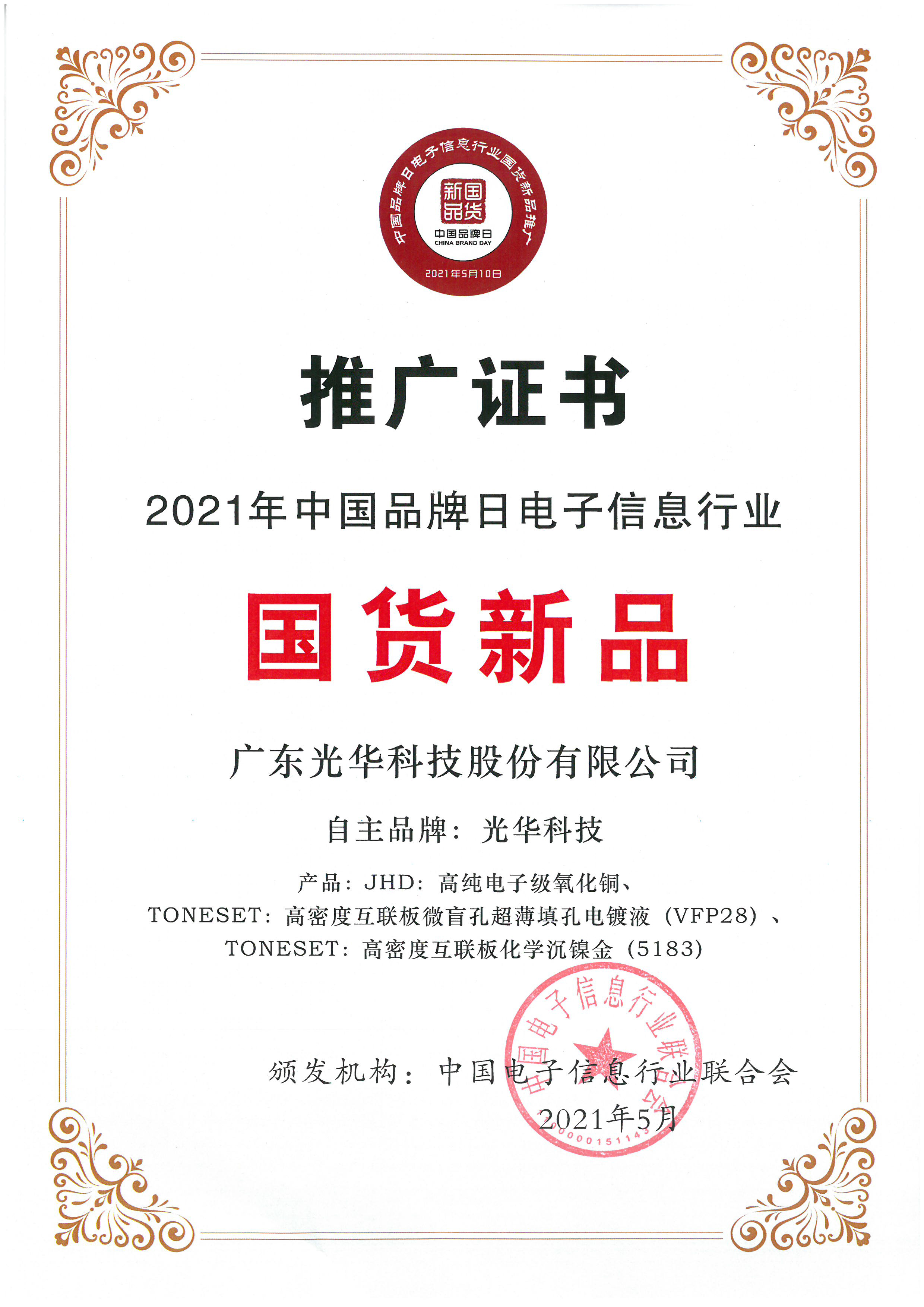 2021年是“十四五規(guī)劃”的開(kāi)局之年,也是中國(guó)品牌建設(shè)的關(guān)鍵之年,中國(guó)越來(lái)越多品牌已成為國(guó)家名片。在今年中國(guó)品牌日活動(dòng)中,光華科技旗下產(chǎn)品品牌JHD的高純電子級(jí)氧化銅,憑借廣泛應(yīng)用于集成電路領(lǐng)域、質(zhì)量達(dá)到國(guó)際領(lǐng)先水平、與全球知名標(biāo)桿客戶長(zhǎng)期戰(zhàn)略合作等優(yōu)勢(shì)脫穎而出,入選由中國(guó)電子信息行業(yè)聯(lián)合會(huì)頒發(fā)的“2021年中國(guó)品牌日電子信息行業(yè)國(guó)貨新品”目錄。“國(guó)貨”光華科技高純電子級(jí)氧化銅為何做到行業(yè)持續(xù)領(lǐng)先?下面為您一一揭秘!