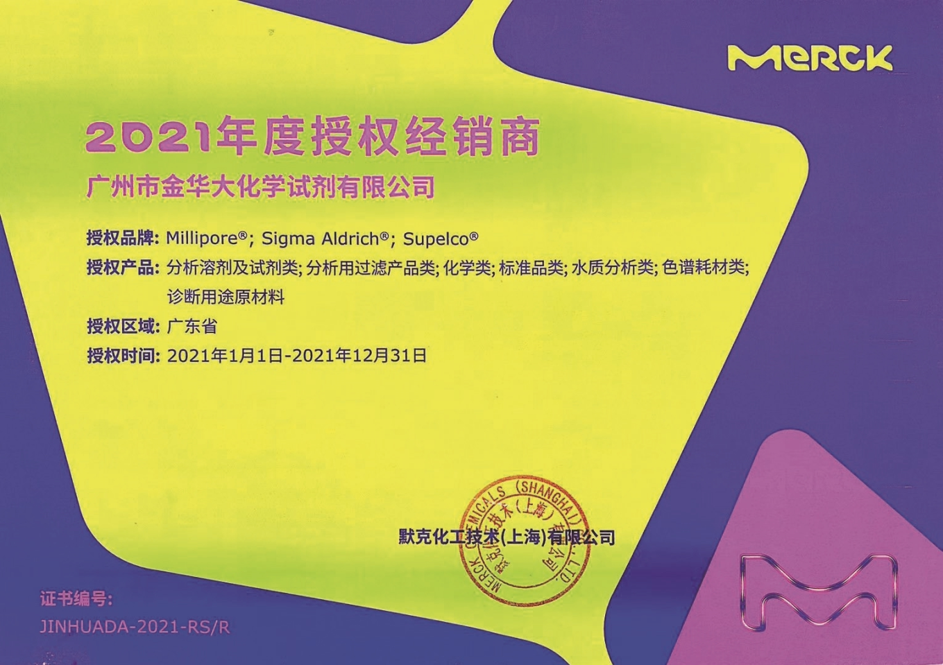 自1997年,金華大與默克Merck建立合作關(guān)系,成為其華南區(qū)合作最久、規(guī)模最大的一級代理商。近25年的合作,雙方的關(guān)系由緩慢增長期到快速發(fā)展期,再到持續(xù)增長成熟期。光華科技作為上市企業(yè),擁有易制毒、易制爆及危險化學(xué)品生產(chǎn)、經(jīng)營、運(yùn)輸?shù)雀黝愘Y質(zhì),經(jīng)營、倉儲、配送管理規(guī)范。金華大作為光華科技旗下子公司,主要承擔(dān)營銷相關(guān)職能業(yè)務(wù),配有高效穩(wěn)定的服務(wù)團(tuán)隊(duì),合作風(fēng)險低,業(yè)務(wù)能力強(qiáng),得到醫(yī)藥、日化、電子信息、新能源、新材料、石化能源等領(lǐng)域的標(biāo)桿客戶的認(rèn)可與信賴。目前,金華大主要代理默克MERCK的色譜溶劑、藥用輔料、卡爾費(fèi)休試劑等產(chǎn)品線,重點(diǎn)面向傳統(tǒng)經(jīng)銷商、醫(yī)藥、科研院校、檢測機(jī)構(gòu)、材料制造等領(lǐng)域。