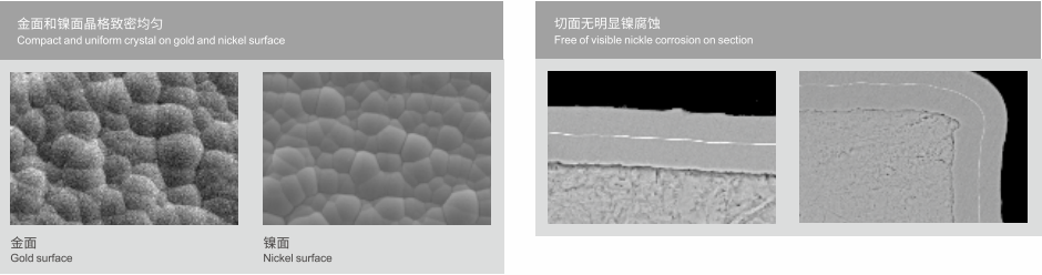 化學(xué)沉鎳金是PCB最終表面處理工藝一種,用于在金屬銅面沉上一層鎳和金,屬于中磷和中高磷系列,具有優(yōu)異的可焊性、抗腐蝕性和耐磨性,是專門為PCB最終表面設(shè)計的理想工藝。