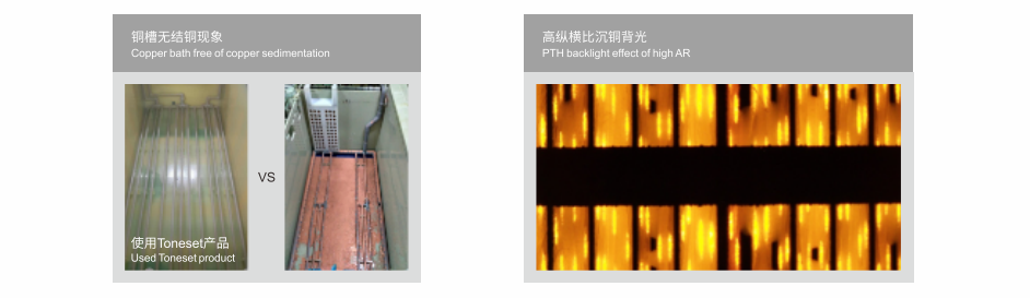 用于垂直設(shè)備的化學(xué)沉銅,在線(xiàn)路板孔壁通過(guò)化學(xué)方法沉積上一層均勻的銅,實(shí)現(xiàn)孔壁金屬化,為電鍍銅提供導(dǎo)通條件。