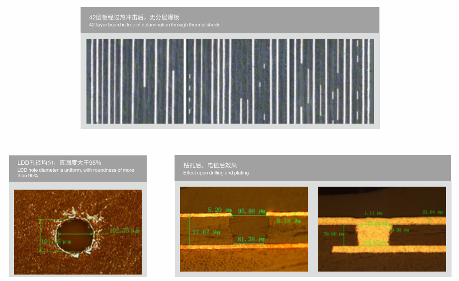 棕化是銅面在微蝕反應(yīng)中,緩蝕添加劑會(huì)選擇性吸附在銅表面,從而在銅表面形成均勻的蜂窩狀微觀結(jié)構(gòu),增加比表面積,使壓后銅面與樹脂材料有良好的結(jié)合力。經(jīng)過LDD棕化處理后形成的銅表面及均勻的蜂窩狀結(jié)構(gòu),有利于吸收激光能量,能應(yīng)用于激光鉆孔前處理。